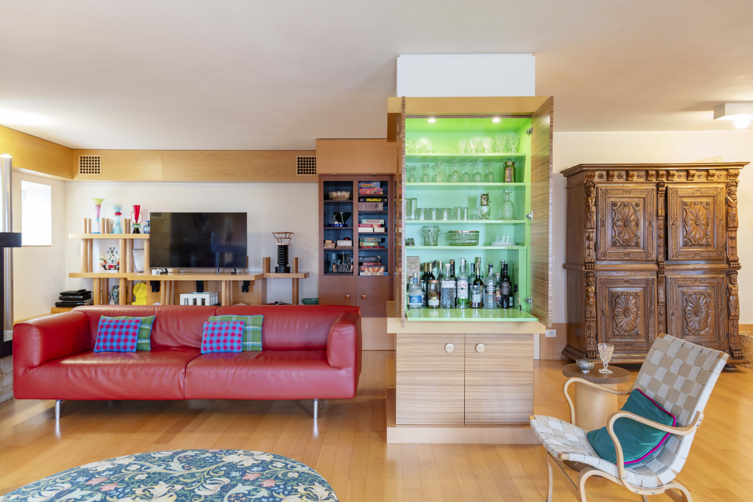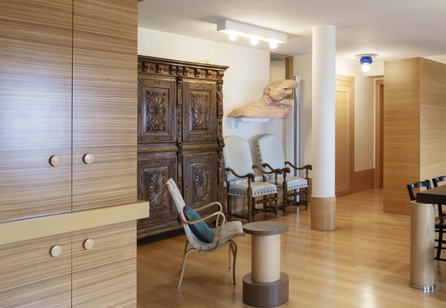 Residenza esclusiva di 500 mq firmata da Ettore Sottsass, affacciata sulle Dolomiti e arricchita da una prestigiosa collezione privata di arte contemporanea.