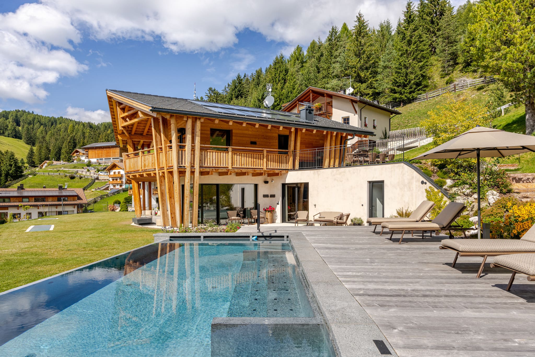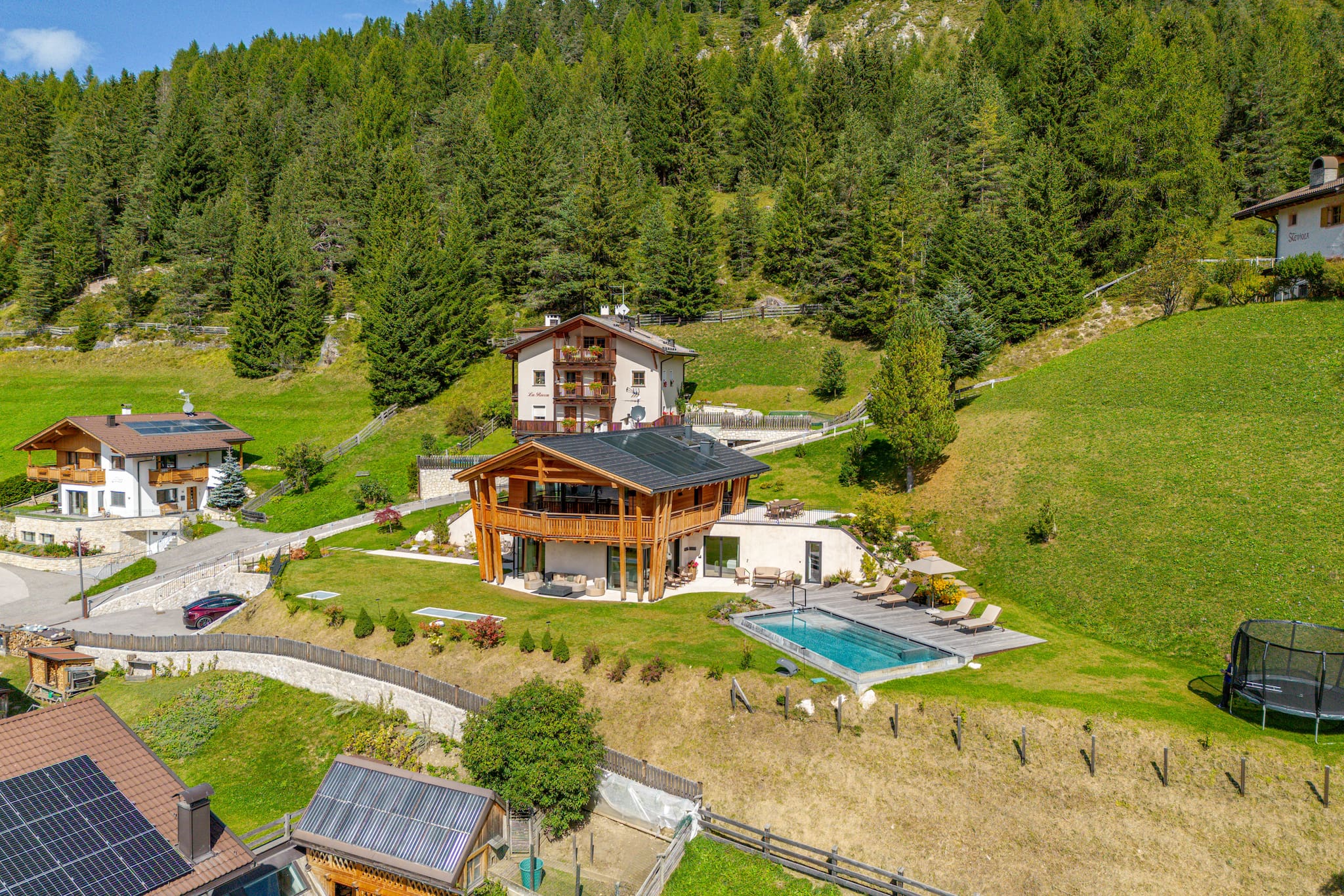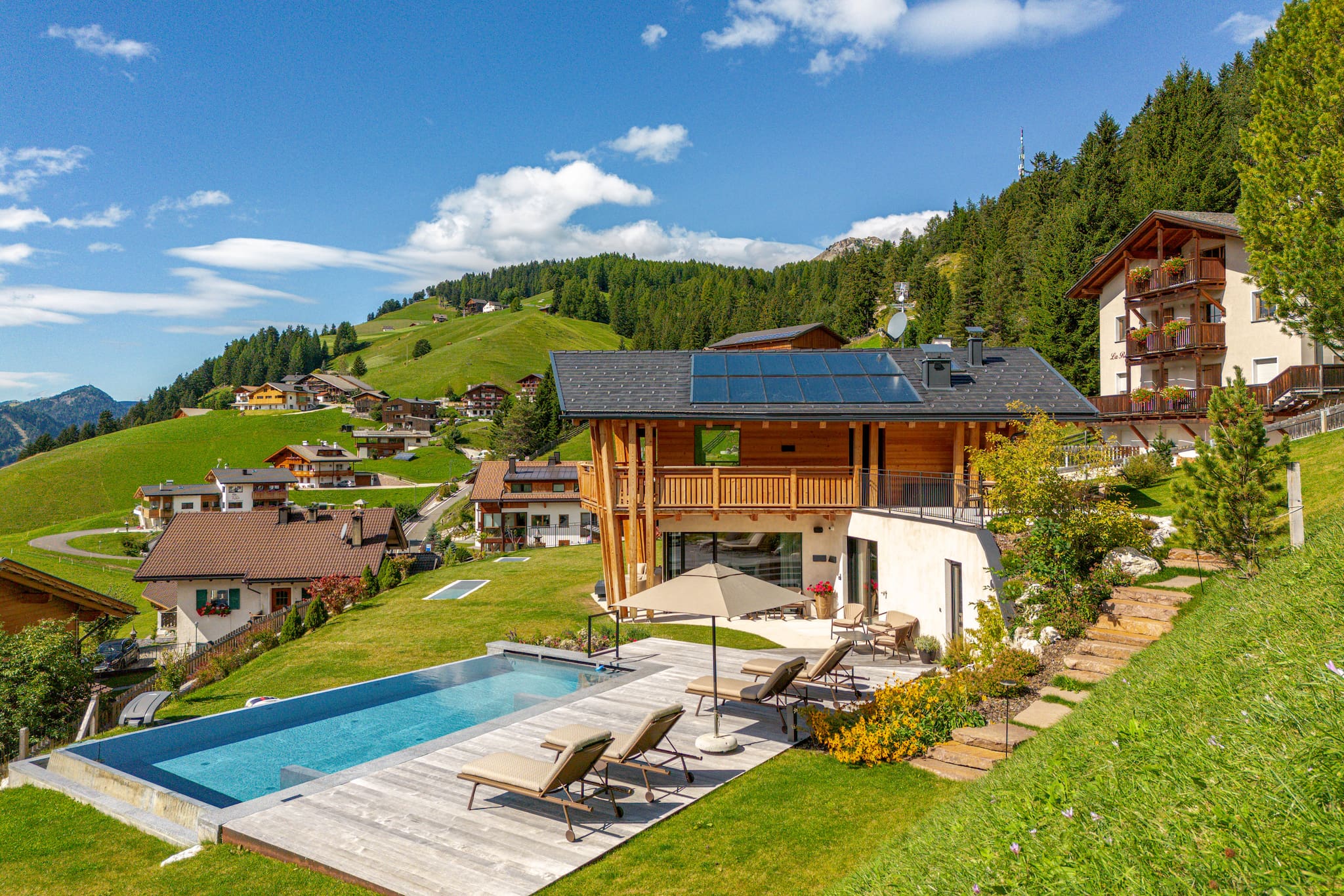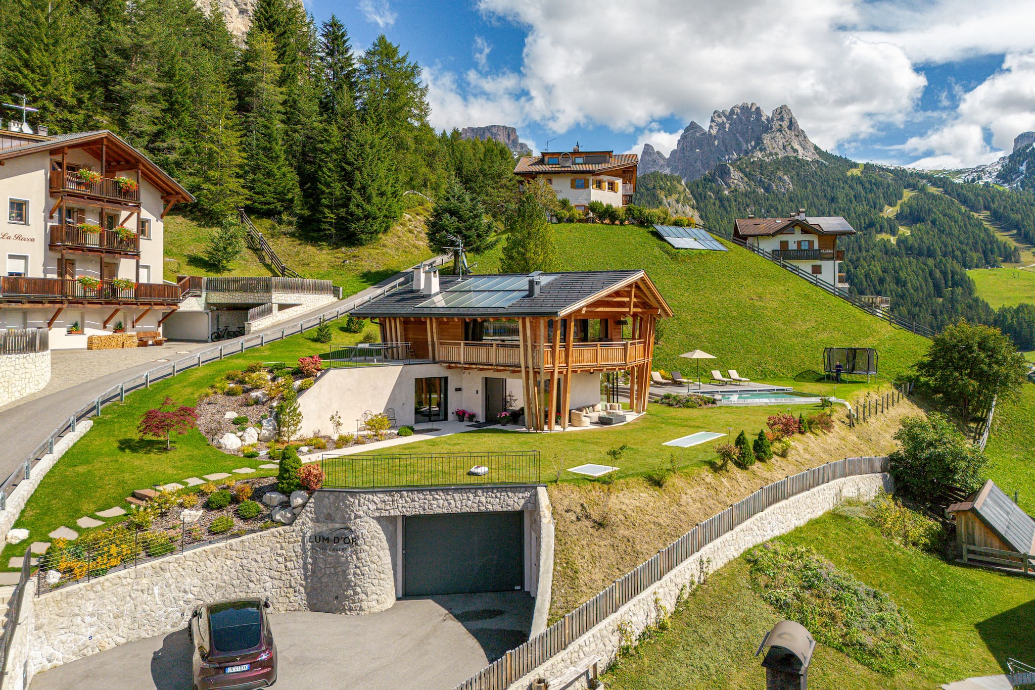 Ha giardino arredato, lavatrice, barbecue, camino, cassaforte, accesso internet (wifi), asciugacapelli, palestra, sauna, vasca idromassaggio, riscaldamento centralizzato, aria condizionata, piscina privata, garage in in struttura, 1 Televisore.